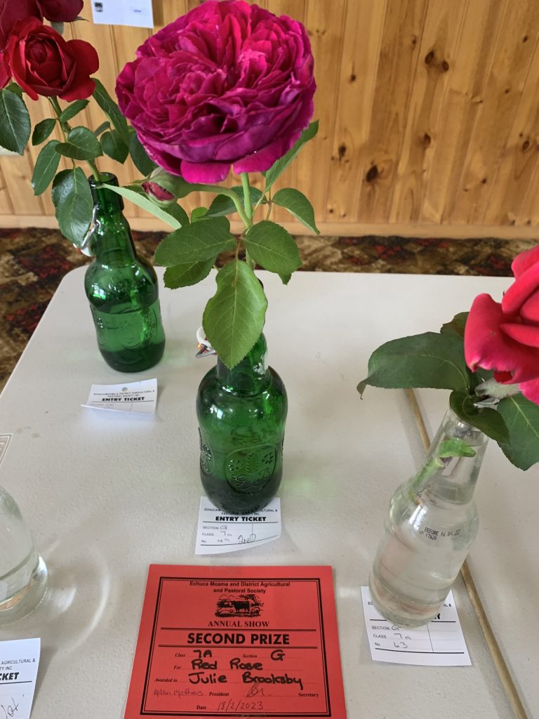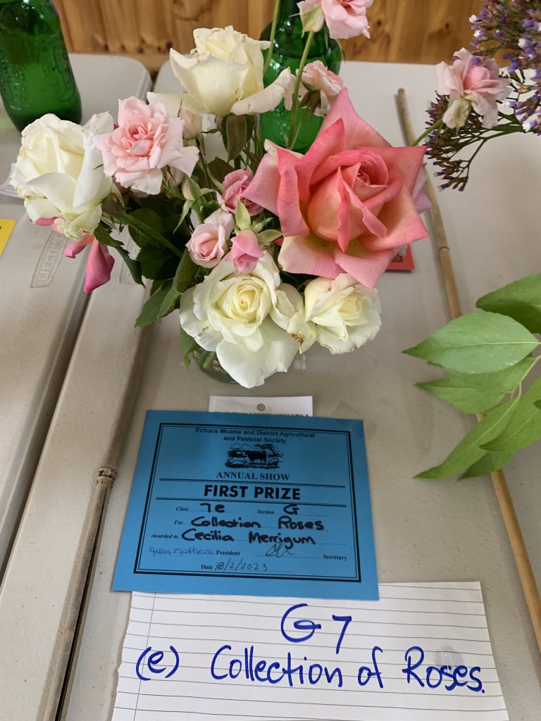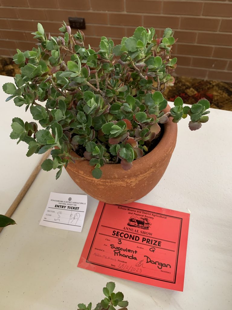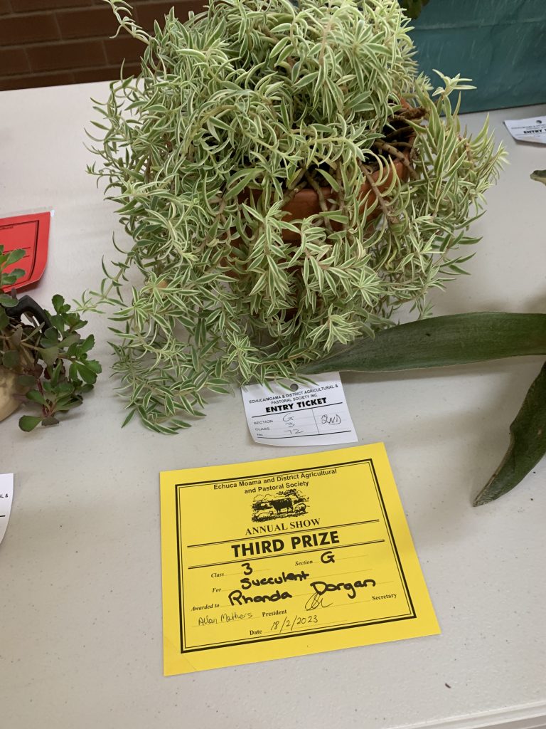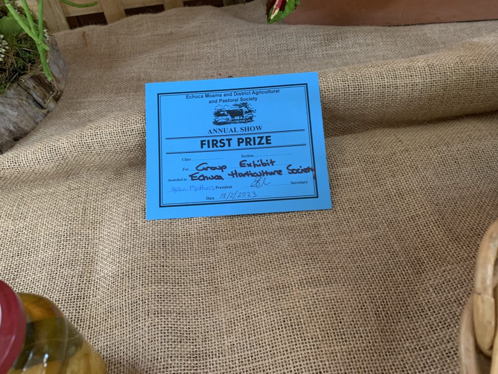 On 17 th February 2023 many of our members entered the Echuca Show Horticultural section. With displays of ferns, flowers, succulents,vegetables, herbs, roses & foliage plants entered for scrutineering by judge Margaret Orso. We also made a display table of 5 items we can do in our garden or floral art & crafts. Some MEMBERS stayed and helped the very small committee to set up the dining pavilion which housed horticulture, photography, cakes, crafts etc. It was a shame that not many entries were received for some of the sections, but hopefully next November when the Show is on AGAIN AT ITS NORMAL SLOT IT WILL BE MORE POPULAR!! Our group won the BEST GROUP EXHIBIT. Member Lesley Serong won OVERALL CHAMPION for her entry Begonia. Many 1st, 2nd & 3rd Prizes were issued. A delicious morning tea was provided for the helpers and judges of the different sections on the Friday. MEMBERS can start to think about an entry into the SHOW it was very enlighteniing the way the judging goes, we need to read the entry RULES very carefully , as a few of us were caught out !! Anyway a great experience for all.