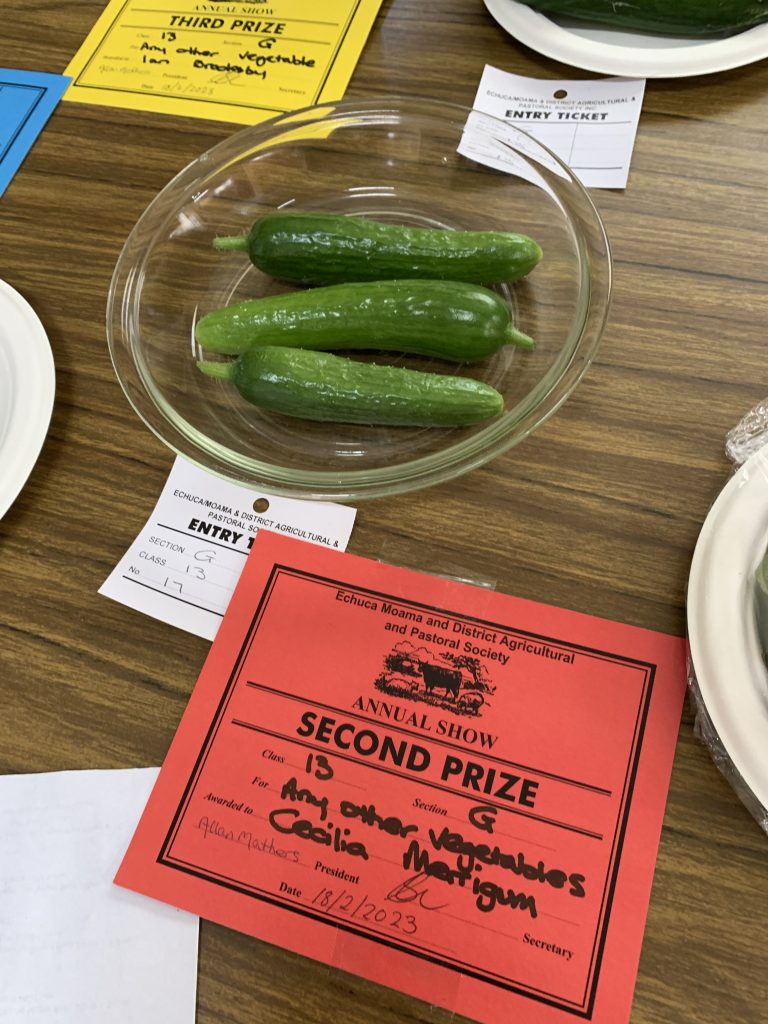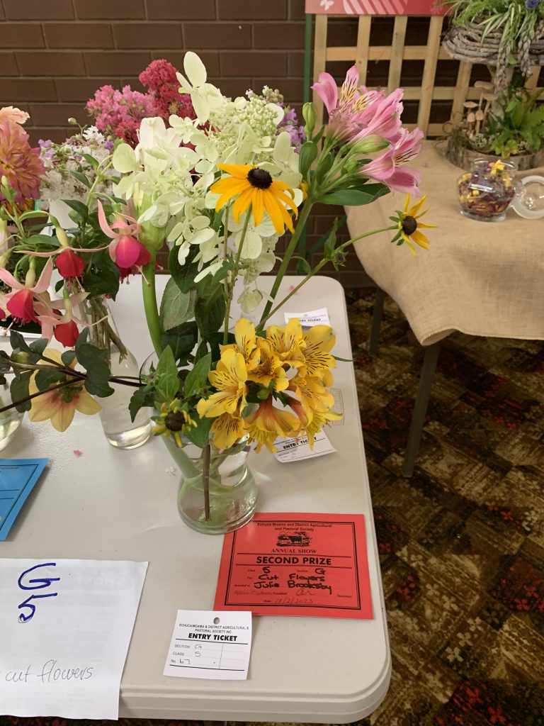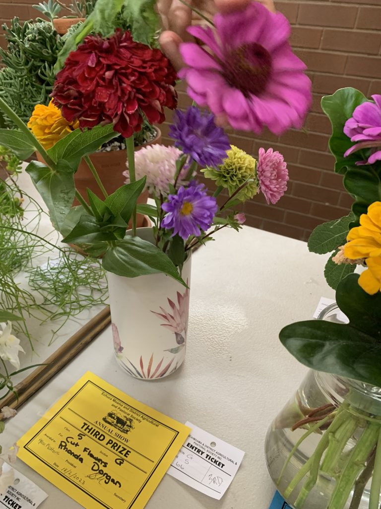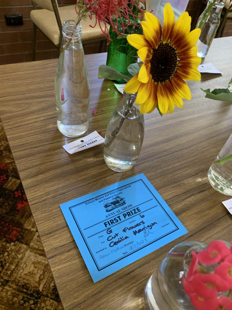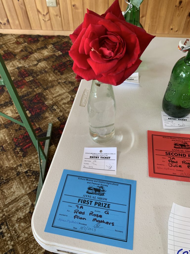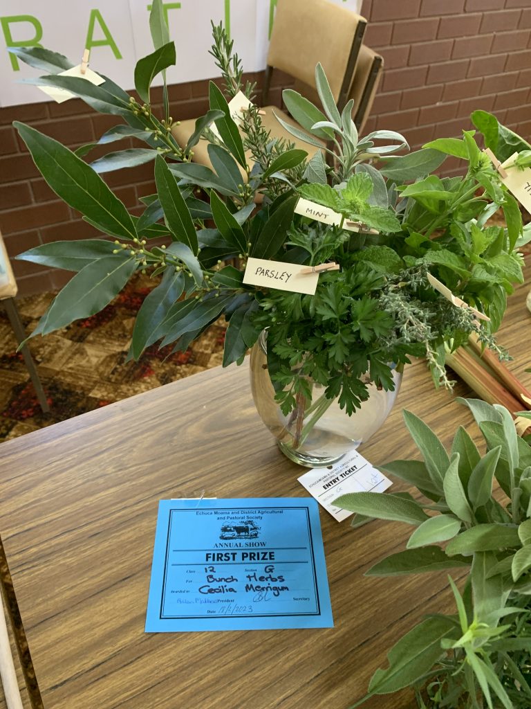 On 17 th February 2023 many of our members entered the Echuca Show Horticultural section. With displays of ferns, flowers, succulents,vegetables, herbs, roses & foliage plants entered for scrutineering by judge Margaret Orso. We also made a display table of 5 items we can do in our garden or floral art & crafts. Some MEMBERS stayed and helped the very small committee to set up the dining pavilion which housed horticulture, photography, cakes, crafts etc. It was a shame that not many entries were received for some of the sections, but hopefully next November when the Show is on AGAIN AT ITS NORMAL SLOT IT WILL BE MORE POPULAR!! Our group won the BEST GROUP EXHIBIT. Member Lesley Serong won OVERALL CHAMPION for her entry Begonia. Many 1st, 2nd & 3rd Prizes were issued. A delicious morning tea was provided for the helpers and judges of the different sections on the Friday. MEMBERS can start to think about an entry into the SHOW it was very enlighteniing the way the judging goes, we need to read the entry RULES very carefully , as a few of us were caught out !! Anyway a great experience for all.